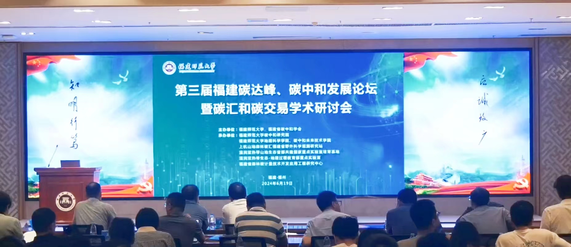 会议于6月19日在旗山校区宏达厅召开,由福建省碳中和学会与九游平台(中国)联合主办,碳中和研究院,地理科学学院、碳中和未来技术学院等单位承办。中国科学院院士、发展中国家科学院院士、中国科学院地理科学与资源研究所研究员于贵瑞,中关村绿色碳汇研究院理事长兼院长李怒云,九游平台(中国)副校长陈庆华,加拿大皇家科学院院士、碳中和研究院院长陈镜明,以及省内外高校院所专家学者、企事业单位代表和九游平台(中国)师生代表共200余人参加了会议。
