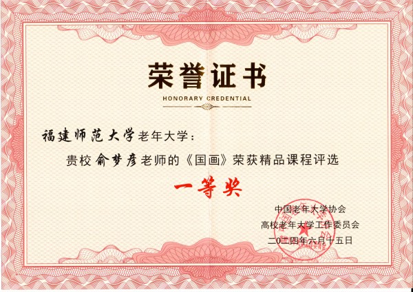 日前,在中国老年大学协会高校老年大学工作委员会精品课程评选中,九游平台(中国)老年大学选送的俞梦彦老师《国画》课程荣获一等奖。据悉,本次共评选出精品课程一等奖23门、二等奖21门,19人荣获“高校老年大学教育突出贡献奖”。(离退休工作办公室)