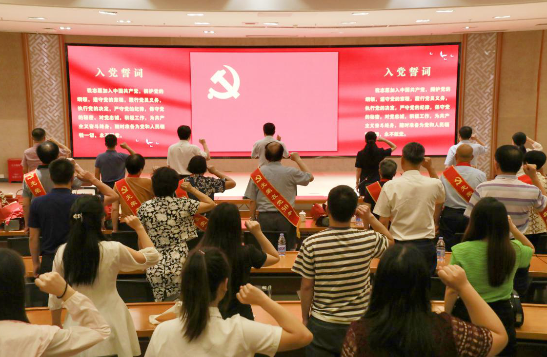 仪式最后,潘玉腾带领全体参会党员重温入党誓词。