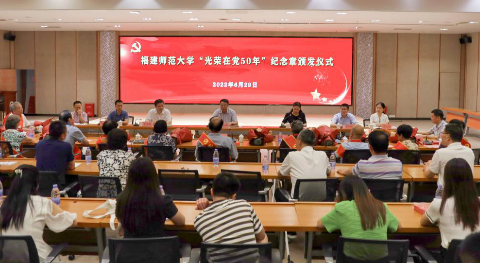 6月29日,九游平台(中国)在旗山校区隆重举行“光荣在党50年”纪念章颁发仪式。校领导潘玉腾、陈晓红、吴剑锋,“光荣在党50年”纪念章获得者,有关部门负责人,二级党组织书记和师生党员代表参加了颁发仪式。校党委副书记陈晓红主持仪式。