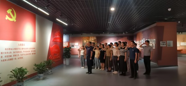 支部党员首先参观了“信仰的力量——中国共产党人的家国情怀”档案文献展,观摩了“追求真理”“坚定信念”“严守党纪”“勤政为民”“修身齐家”等主题档案文献,从中感悟中国共产党人坚定的理想信念、高尚的道德情操、高度的纪律自觉和优良的家风家训,深入汲取精神力量。随后,在支部书记、党政办公室主任陈晓斌的领誓下,全体党员面对党旗重温入党誓词,用铿锵誓言表达对党忠诚、永葆本色的坚定决心。