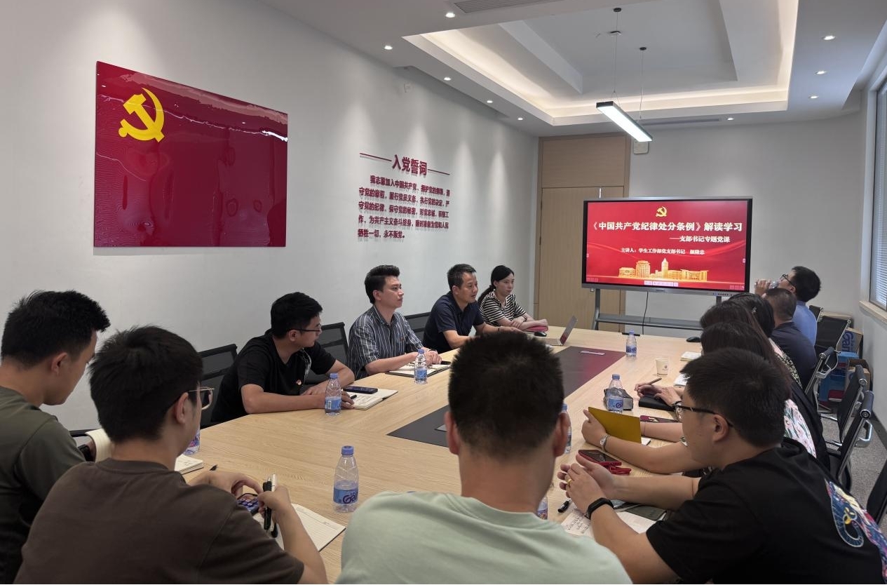 “七一”当天,党支部书记带领全体党员共同重温入党誓词。支部党员一致表示,要把纪律规矩转化为政治自觉、思想自觉、行动自觉,切实将学习教育成果转化为推动学生工作高质量发展的强大动力。