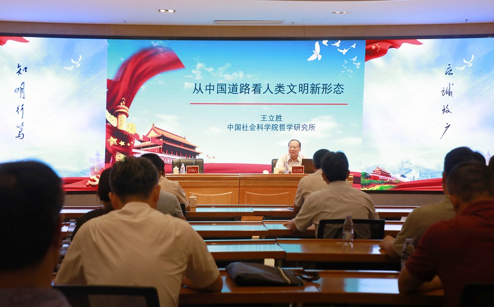 报告会上,王立胜结合习近平总书记关于中国式现代化道路的重要论述,围绕“从中国道路看人类文明新形态”主题,从哲学和政治经济学的角度,对“现代文明观念的意涵、西方文明的宗教精神及其中心主义困境、中华文明的儒家传统及其包容性、中国道路对于人类文明新形态的现代探索、人类文明新形态的文明论形式”等五个方面内容作了精彩讲解,深入挖掘和准确揭示了中国式现代化道路、人类文明新形态等重大论断内在的理论和历史逻辑。