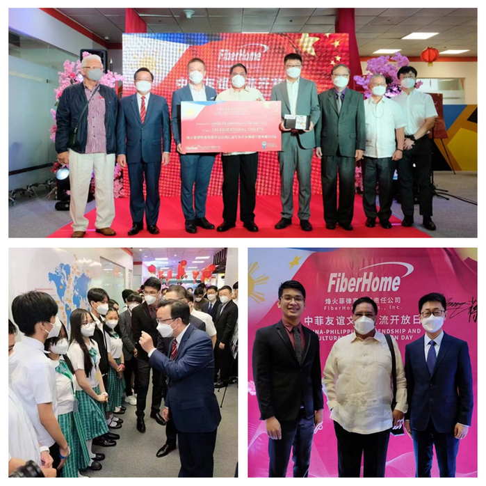 近日,由中国驻菲律宾大使馆主办,烽火菲律宾有限责任公司(Fiberhome Phil’s Inc)承办的中菲友谊文化交流开放日活动在马尼拉烽火公司总部举行。中国驻菲律宾黄溪连大使,杨国良公参,谢永辉参赞,菲律宾通信部部长Ivan Uy,贸易与工业部助理部长Glenn G. Penaranda,红溪礼示大学副校长Engr. Jose Macapagal Jr., 中资企业代表,红溪礼示大学孔子学院师生等参加了活动。
