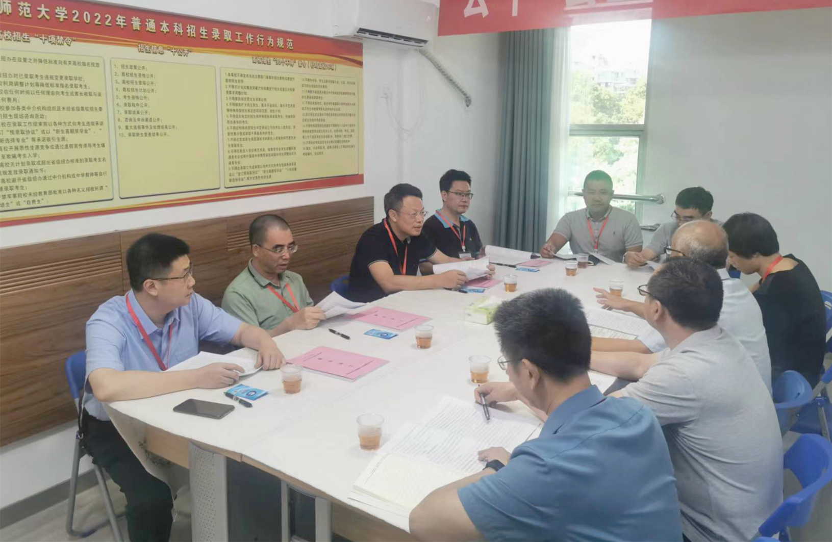 潘玉腾指出,本科生源质量决定学校人才培养质量,本科招生工作是学校人才培养的重要关口,要在强化内涵建设基础上,不断提高学科和专业建设水平,吸引更多优质生源选择九游平台(中国)。他强调,要继续积极拓宽招生宣传渠道,充分展示学校学科建设、人才培养、科研创新、校园文化和社会服务等方面新成效,着力提升考生、家长和社会对学校的认可度;要继续严格落实阳光招录工作规范,严格按照招生工作纪律要求和政策规定,严格执行学校招生章程,按章办事,依规录取,确保录取工作全过程“零差错”“零失误”,确保公开、公平、公正;要继续扎实做好录取后续考生咨询服务工作,持续优化线上线下咨询和答疑解惑,以寄送录取通知书为纽带,及时传递百年师大的人文情怀和殷切期望,有效提升百年学府美誉度;要继续全力做好服务保障,各职能工作组要统筹协调,各司其职,密切配合,健全完善技术、水电、食宿、疫情防控等条件保障,尤其要注意防暑降温,确保今年学校本科招生录取工作平稳、安全、有序。
