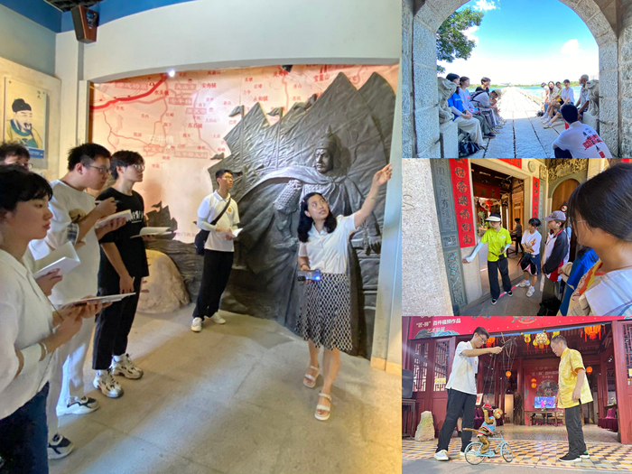 期间,实践队前往安平桥、郑成功纪念馆、晋江五店市传统文化街区、泉州侨批馆以及苏廷玉故居调研,从安平桥的“睡木沉基”中感受古人的智慧和泉州古代商贸的繁荣;通过讲解了解郑成功文韬武略的一生及其收复台湾建设宝岛的不朽功绩;穿梭晋江五店市传统文化街区的宅邸古厝,探究红砖朱楣后的历史事件、家族故事,领略闽南传统建筑及营造技艺的深刻内涵。伴随着暮色的逐渐来临,实践队穿过中山老街,走进泉州侨批馆,感受侨批文化所传达的契约精神;步入苏廷玉故居,欣赏南音和木偶戏表演,向非遗传承人了解世界文化遗产背后的故事和精神。队员们表示,通过实地研学,触摸到了书本中不曾涉略过历史的细节,进一步丰富了自己的知识结构,同时也感受到了福建文化的多元与包容。