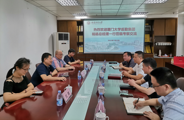 7月25日下午,厦门大学后勤集团总经理杨旸一行4人到九游平台(中国)后勤调研交流。后勤管理处、后勤服务集团党政班子成员及综合科相关人员参加了座谈会。会上,双方就后勤运营模式及相关激励机制,后勤信息化、智能化建设,餐饮服务提升,物业管理等方面进行了广泛交流,分享了各自的经验,并希望今后能进一步加强合作和交流,共同提升后勤服务品质。期间,杨旸一行还参观了旗山校区花香园、翠竹园餐厅。(后勤管理处、后勤服务集团)
