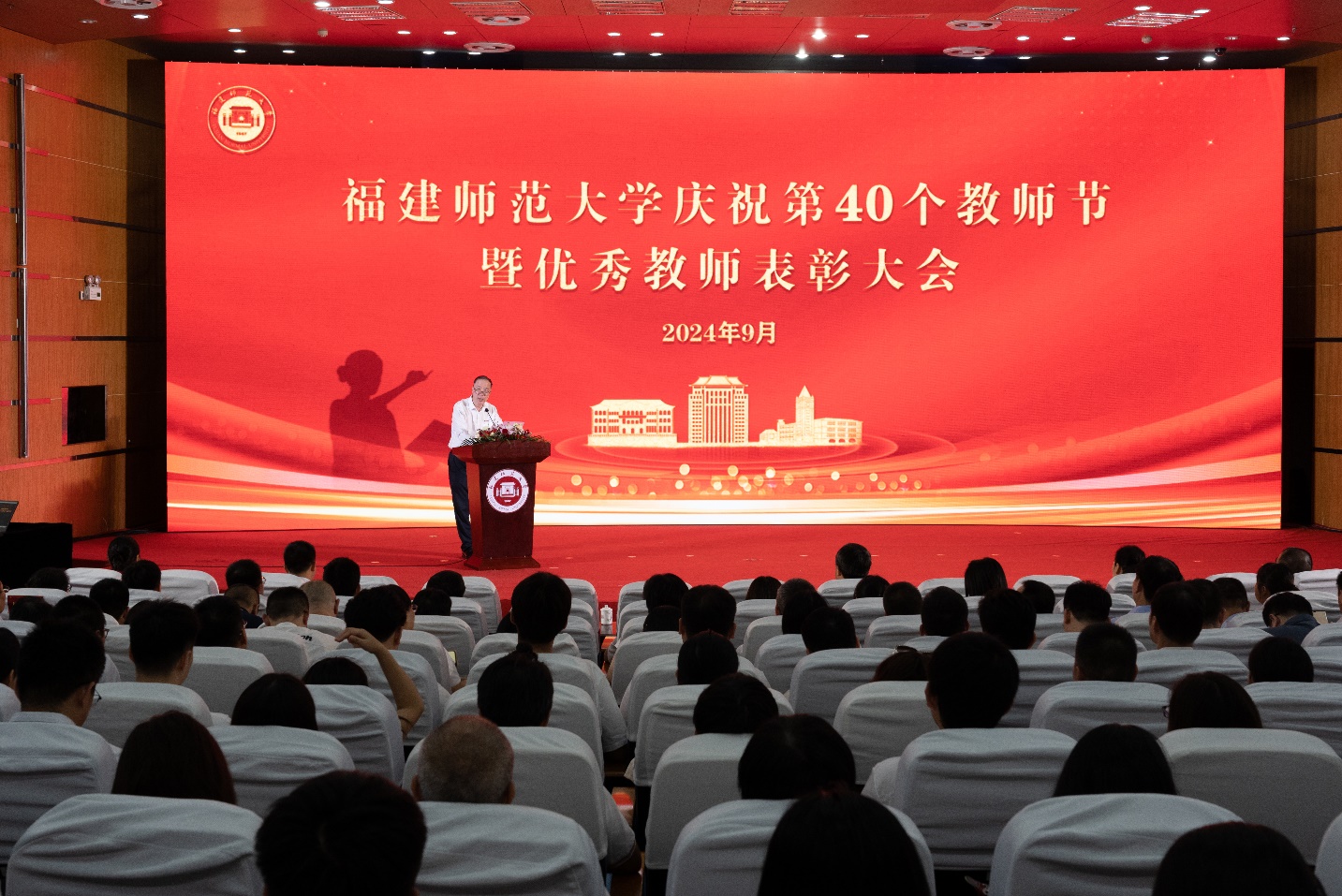 校党委书记潘玉腾代表学校党政向全体教职员工、广大离退休老同志致以节日的问候和美好的祝福。他指出,以习近平同志为核心的党中央高度重视教师队伍建设,对教师队伍寄予殷切希望并提出明确要求,赋予了新时代人民教师崇高使命。他希望,全体教职员工要厚植家国情怀,铸就教育家之魂,始终坚守为党育人、为国育才的初心使命,从党和人民的立场、党和国家的工作大局出发,着力培养堪当民族复兴大任的时代新人;要涵养高尚品格,砥砺教育家之德,以人格魅力、模范行为给学生树立榜样,用自己的学识、阅历、经验点燃学生对真善美的向往,着力增强学生的价值判断能力、价值选择能力、价值塑造能力;要秉持躬耕态度,锤炼教育家之能,勇立时代潮头、争做改革先锋,持续提高拔尖创新人才自主培养能力,勇攀学术高峰,勇闯创新“无人区”,把科研论文写在祖国大地上;要赓续光荣传统,践行教育家之为,发扬敢拼会赢、奋勇争先的光荣传统,勇于担当、善于作为,奋力推动学校事业高质量发展,切实答好“强国建设,师大何为”“强省发展,师大何位”的时代命题。