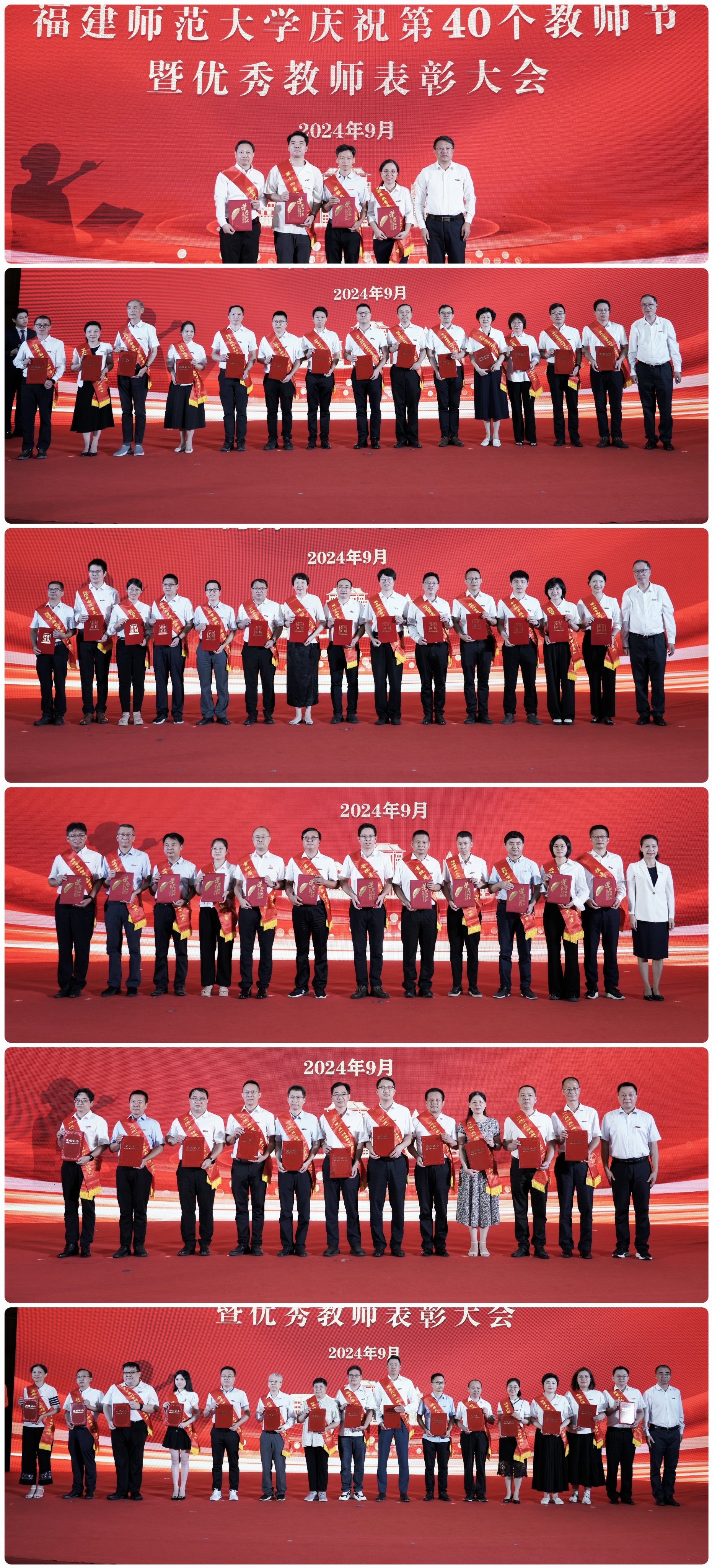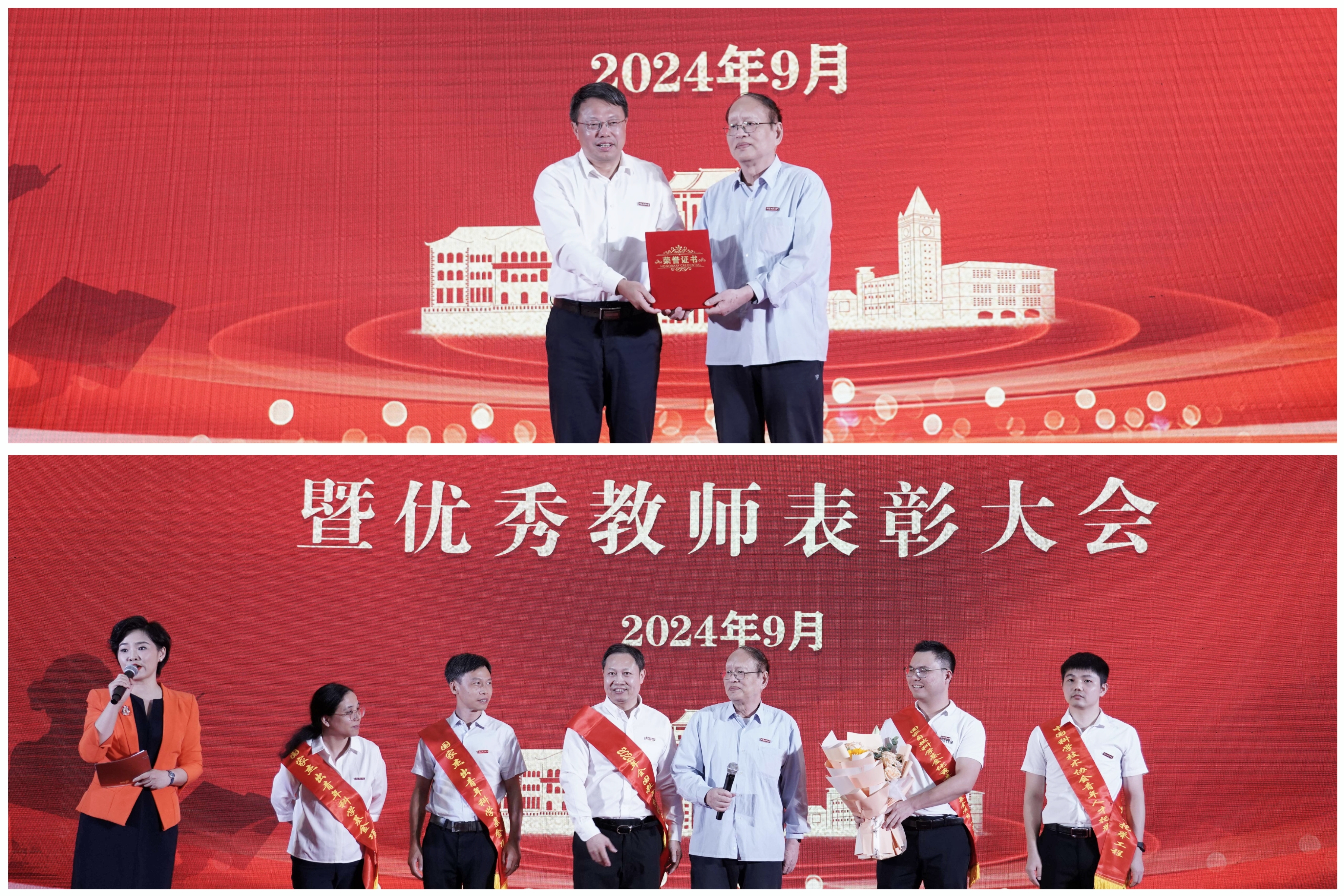 会上,校党委副书记陈晓红宣读表彰名单,与会校领导为受表彰的教师代表颁奖。