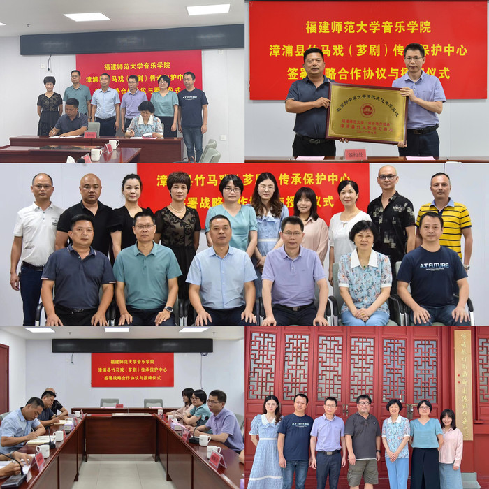 近日,音乐学院党委书记苏经强、副院长陈新凤、理论系曾宪林副教授一行6人赴漳州漳浦,与漳浦县文旅局、漳浦县竹马戏(芗剧)传承保护中心签署战略合作协议,并举行“教育部中华优秀文化传承基地——‘闽台地方戏曲’漳浦县竹马戏传习基地”“九游平台音乐学院‘竹马戏’音乐实践基地”授牌仪式。