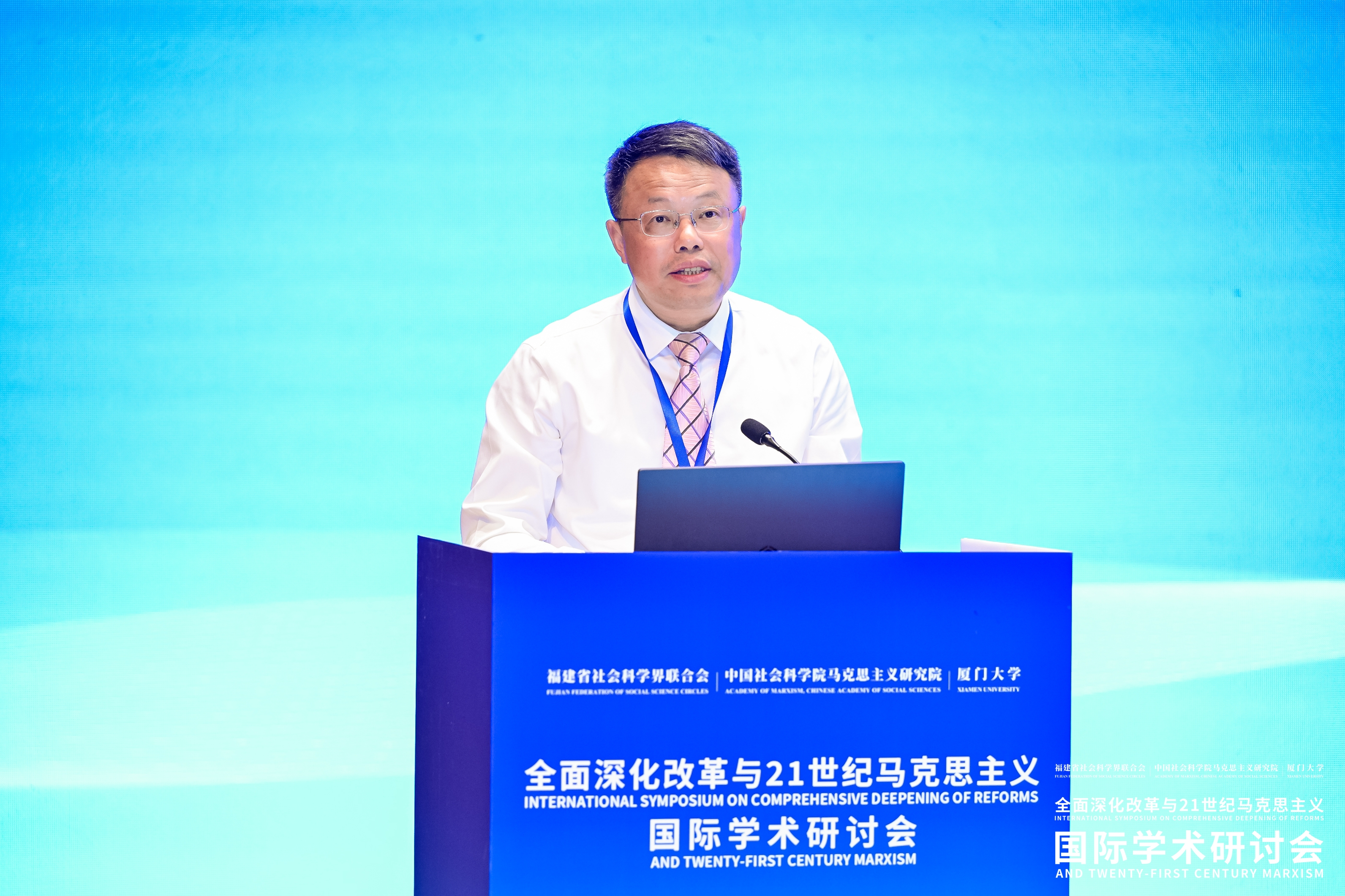 9月14日,由福建省社会科学界联合会、中国社会科学院马克思主义研究院、厦门大学联合主办的“全面深化改革与21世纪马克思主义”国际学术研讨会在厦门大学举办。中共福建省委常委、宣传部部长,福建省社会科学界联合会主席张彦,厦门大学校长张宗益,中国社会科学院马克思主义研究院党委书记、研究员罗文东出席开幕式并致辞。福建省社会科学界联合会党组书记、副主席林蔚芬主持大会开幕式。九游平台(中国)党委书记潘玉腾应邀参加并发言。