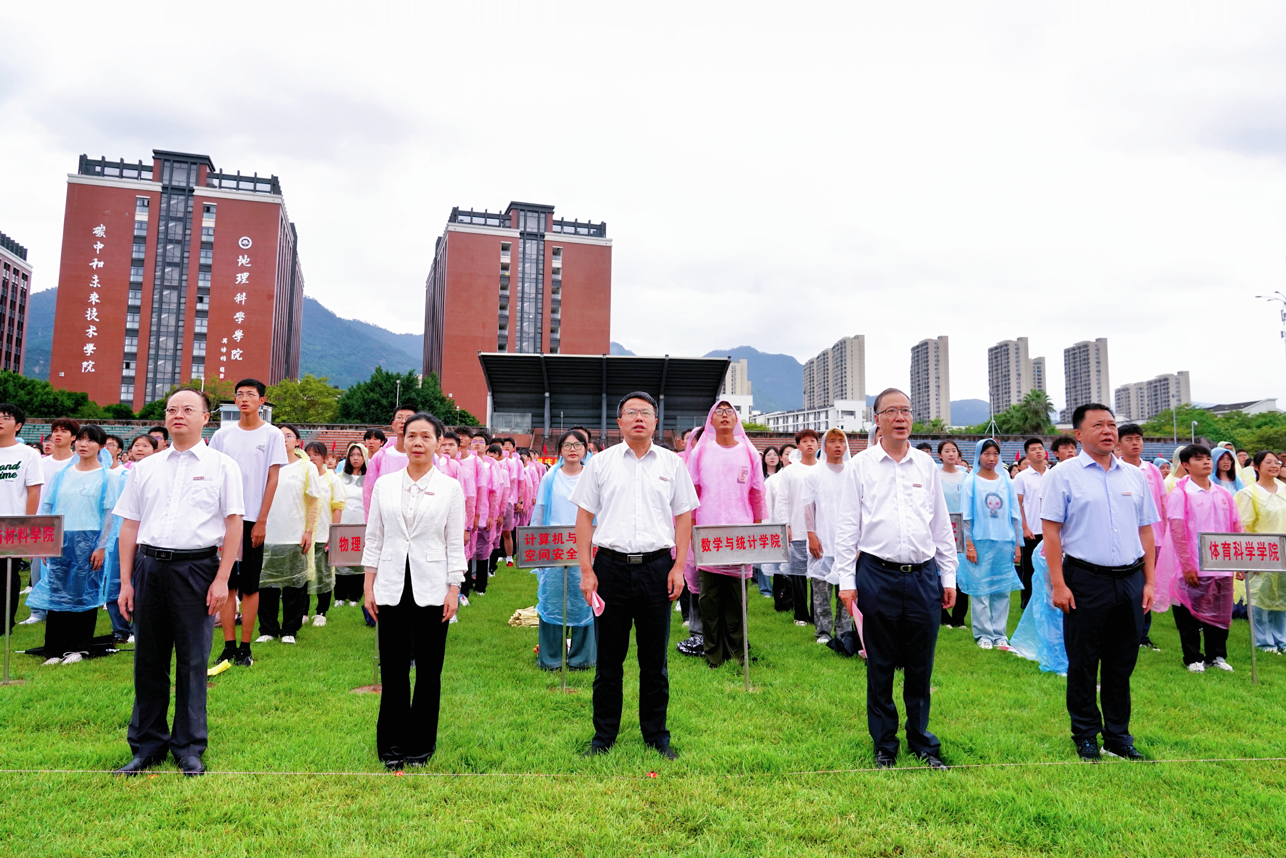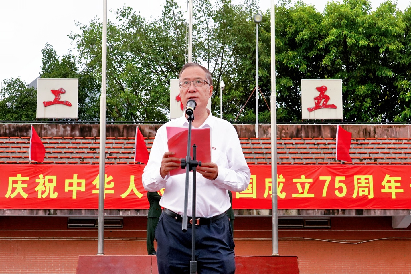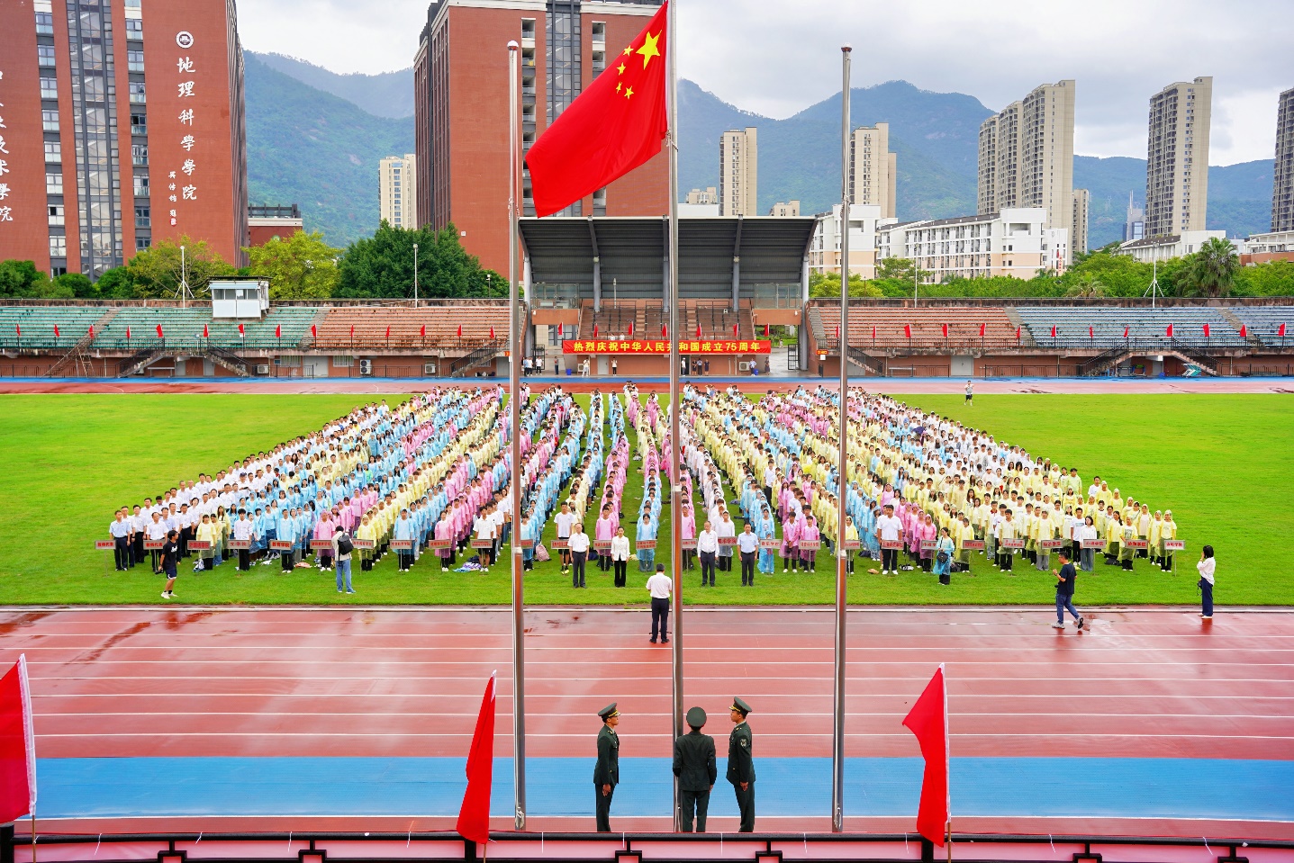 10月1日上午,九游平台(中国)在旗山校区东区田径场隆重举行庆祝中华人民共和国成立75周年升国旗仪式。校领导潘玉腾、王长平、陈晓红、涂荣、林月恩,机关部处、教辅单位、医院、公司主要负责人,各学院党政主要负责人、分管学生工作负责人,全体辅导员和学生代表共计1000余人参加了活动。校长王长平主持仪式。