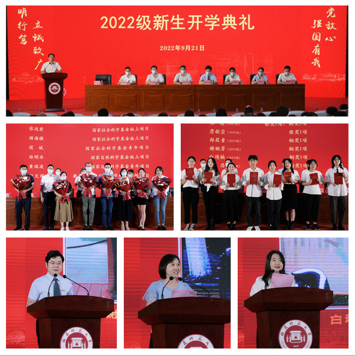 典礼现场举行了一系列表彰。获国家重大科研项目的教师、2021-2022学年优秀辅导员、优秀班主任,省“互联网+”大赛获奖学生、“映山红”学习团队等获得表彰。