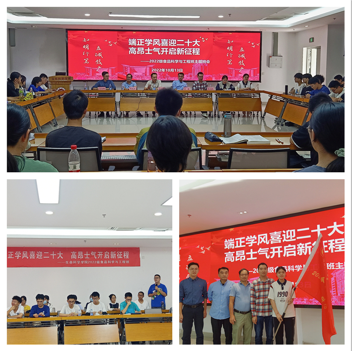 为深入了解学生的学习、生活情况,10月14日下午,生命科学学院党委书记张兆文走进联系班级——2022级食品科学与工程班,参加“端正学风喜迎二十大·高昂士气开启新征程”学风建设主题班会,与学生共话大学学习生活。专业负责人杨民和教授、系主任郑毅副教授、班主任甄向凯副教授、2022级辅导员以及2022级食品科学与工程班全体同学参加了活动。