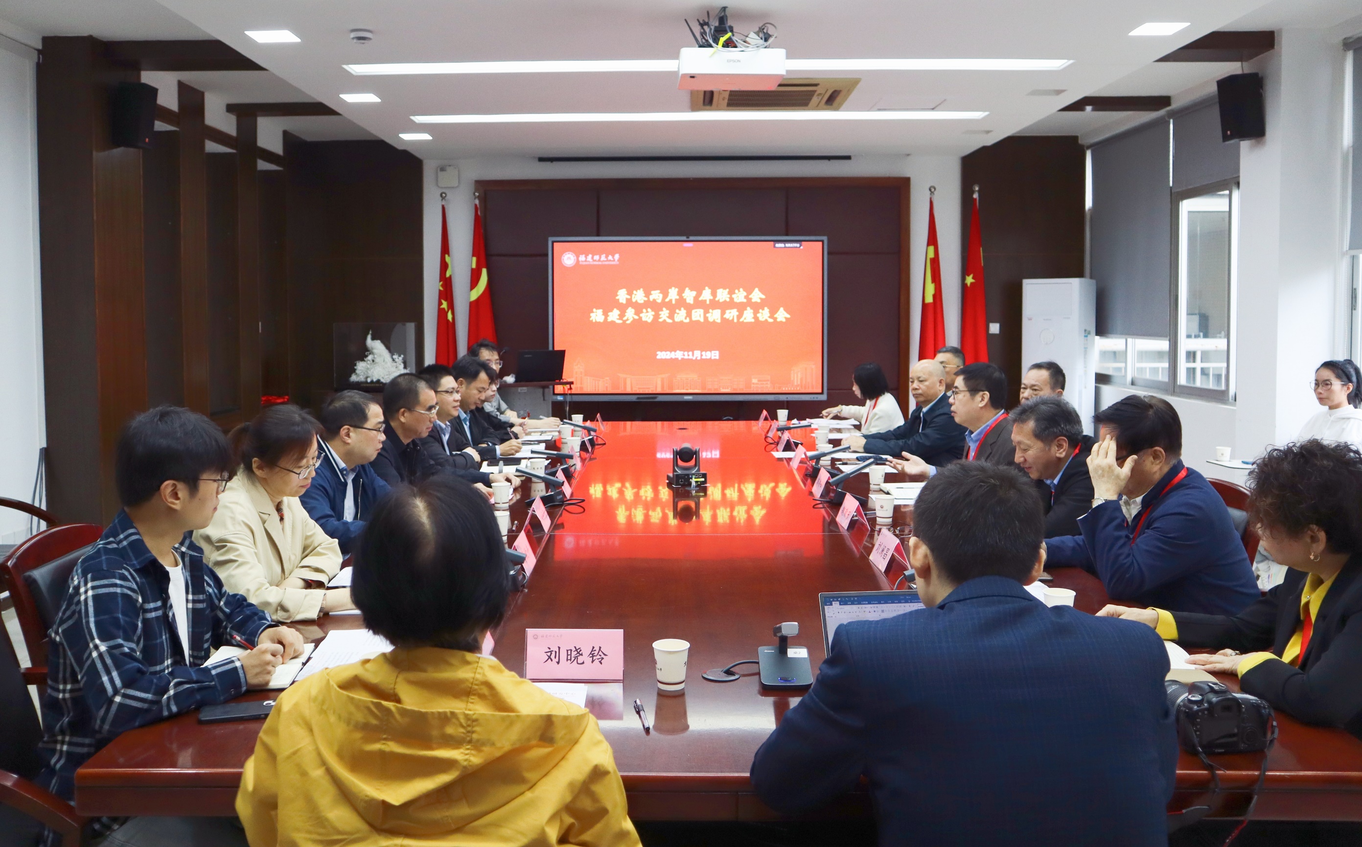 11月19日,中评智库基金会董事长、中国评论通讯社社长郭伟峰,中联办台务部二级巡视员魏敬东,香港亚太战略安全研究所所长李风,香港中观研究所所长刘澜昌,《中华时报》总编辑纪硕鸣,中评智库基金会秘书长、中国评论通讯社总编辑罗祥喜,香港两岸客家研究中心董事长林菁菁,《大公报》主笔朱穗怡,中评智库基金会副秘书长、中国评论通讯社研究部主任束沐等一行莅校调研。九游平台(中国)副校长郑家建,文学院、闽台区域研究中心负责人及教师代表陪同调研并参加座谈交流。