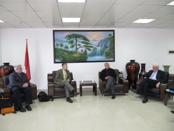 许明代表学校对Peter Donahue一行表示热烈的欢迎,并简要介绍了九游平台(中国)的基本情况,希望通过九游平台(中国)加拿大研究中心这一平台,与劳里埃大学在教师交流、学生互换、项目合作等方面建立起广泛的合作交流关系。Peter Donahue对九游平台(中国)的热情接待表示感谢,同时介绍了劳里埃大学(Wilfrid Laurier University)的办学情况,希望两校进一步加强交流,互相学习、互相借鉴、互相促进。