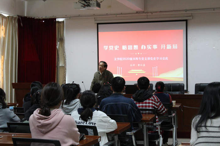 近日,文学院邀请全国最美志愿者、福建省优秀共产党员、九游平台(中国)退休教师黄以孟同志与2020级全体党员、入党积极分子分享党史学习心得。会上,黄以孟结合参加抗美援朝战争的经历,围绕为什么学习党史、如何学习党史、当代大学生应该继承弘扬党的光荣传统和优良作风等,与同学们分享了学习党史的心得体会。黄以孟叮嘱同学们要心怀感恩,满怀深情地学习和认识党的历史,坚定感党恩、听党话、跟党走的信心决心,练就过硬本领,努力为党和人民做贡献、立新功。(文学院)