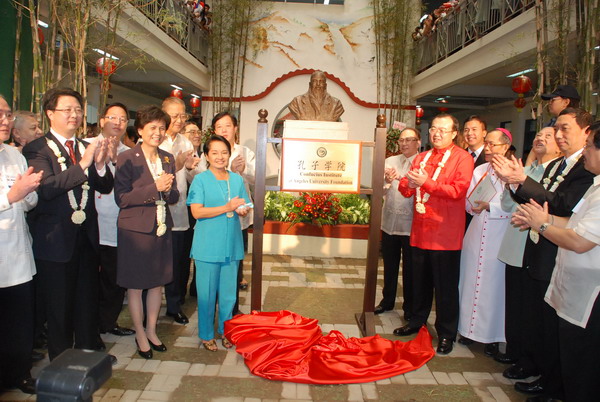 菲律宾总统阿罗约亲临红奚礼示大学,与中国驻菲大使刘建超一同为孔子学院揭牌。菲律宾旅游部部长 ACE DURANO、高教部部长EMMANVEL Y.ANGELES,中国国家汉办主任、孔子学院总部总干事长许琳以及九游平台(中国)校长黄汉升,红奚礼示大学董事长 PACIANO B. ANICETO, D.D,红奚礼示大学校长ATTY.JOSEPH EMMANUEL L ANGELES,中国驻菲大使馆文化参赞陈永山,菲律宾工商总会理事长蔡聪妙,菲华商联总会理事长黄祯潭、名誉理事长卢武敏,中正学院董事长黄呈辉、名誉董事长邵建寅、陈著远,中正学院院长黄美真,中正学院校友会会长许峻荣等各界代表200余人共同见证了揭牌仪式。