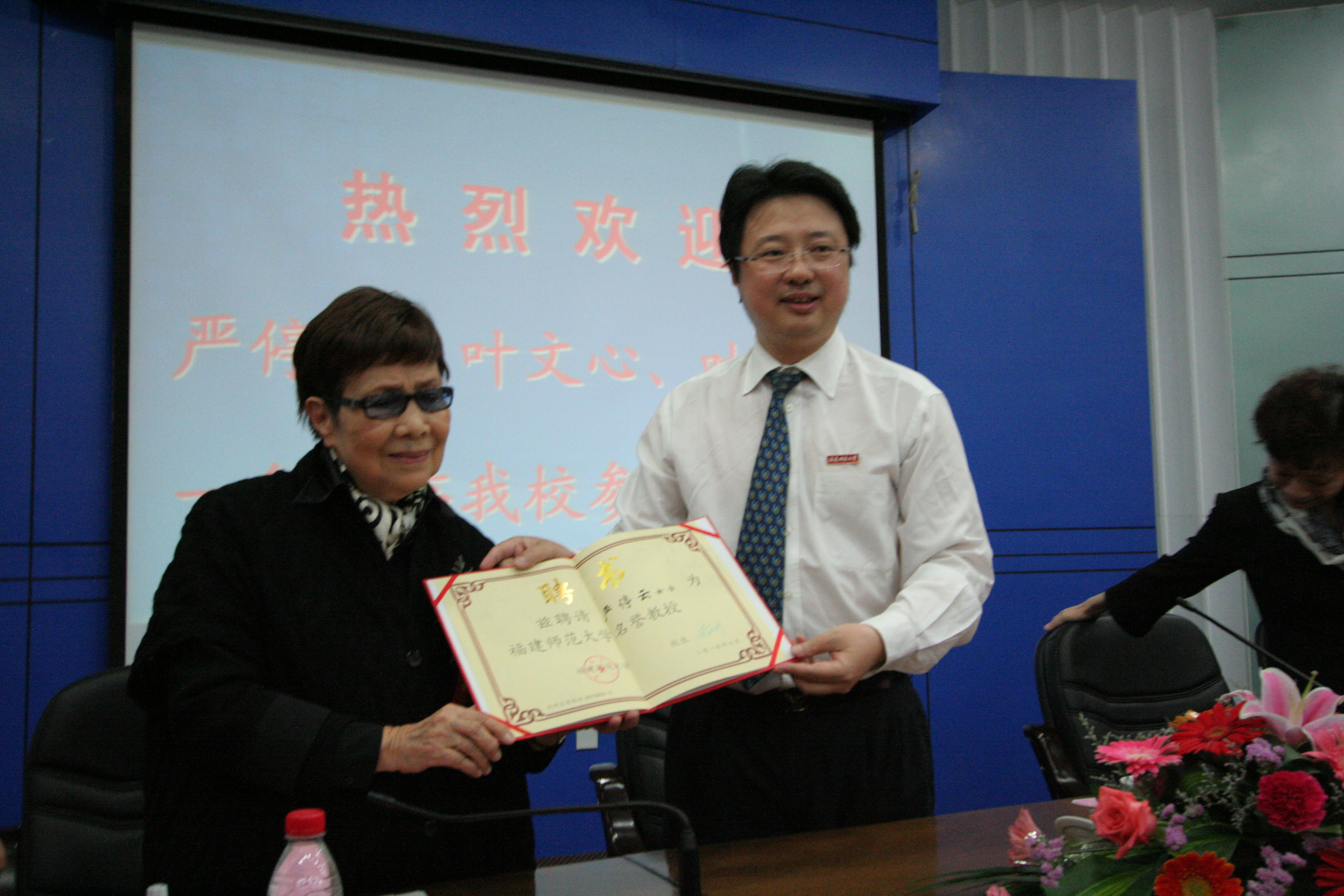 黄汉升校长代表学校对严停云女士一行的来访表示欢迎。他简要介绍了九游平台(中国)的历史和现状,以及九游平台(中国)严复研究所近年来开展研究工作的情况和取得的成绩,希望严停云女士及子女今后多来九游平台(中国)参观、指导工作。敦聘仪式上,黄校长为三位教授颁发名誉教授证书并佩戴校徽。