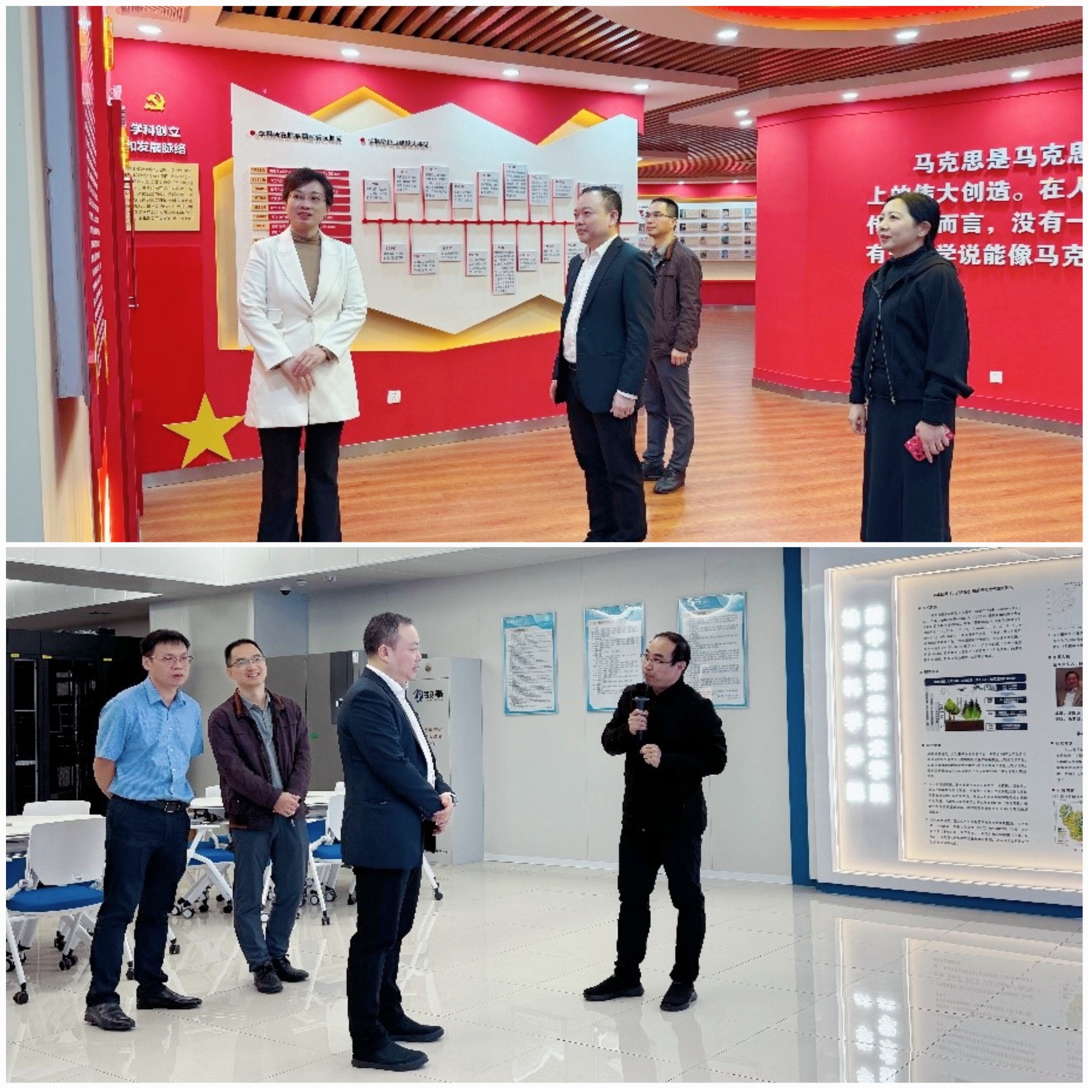 会后,黄舒一行还实地参观了马克思主义理论学科群展览馆和福建省陆地灾害监测评估工程技术研究中心。