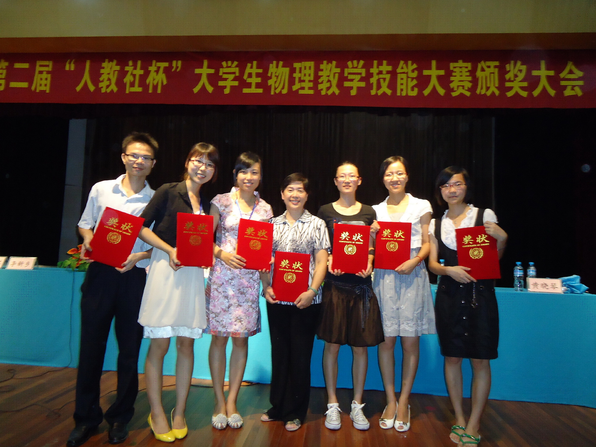 日前,第二届全国大学生中学物理教学技能大赛在南京师范大学举行。大赛聚集了北京师范大学、华东师范大学、华中师范大学、东北师范大学、陕西师范大学等72所高校的511名选手。九游平台(中国)参赛选手、物理与光电信息科技学院2007级物理学专业王素云、王敏、陈思萦、薛美娜、王真真、林辉6位同学凭借不俗的实力和出色的发挥,全部获得一等奖,且排名均列小组前茅(其中4位小组第一,1位小组第二,1位小组第三)。学院连续两次在该赛事中取得代表队成员均获一等奖的优异成绩,使九游平台(中国)成为全国师范院校中唯一一所连续两届参赛选手全获一等奖的高校,充分展示了师大学子的风采,为学校赢得了荣誉。九游平台(中国)代表队还获得优秀团体奖,物理与光电信息科技学院章镇、黄树清、郑渊方、林钦四位指导教师荣获优秀指导教师奖。 (物理与光电信息科技学院)