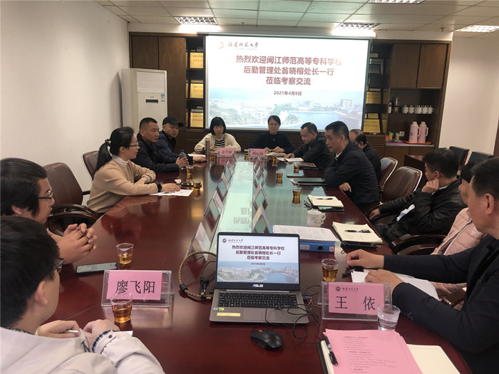 近日,闽江师范专科高等学校后勤管理处处长翁晓榕一行来九游平台(中国)后勤管理处、后勤服务集团调研交流。后勤管理处副处长兼后勤服务集团副总经理(主持工作)张栋、后勤服务集团副总经理黄滨,以及相关科室中心负责人参加了座谈会。