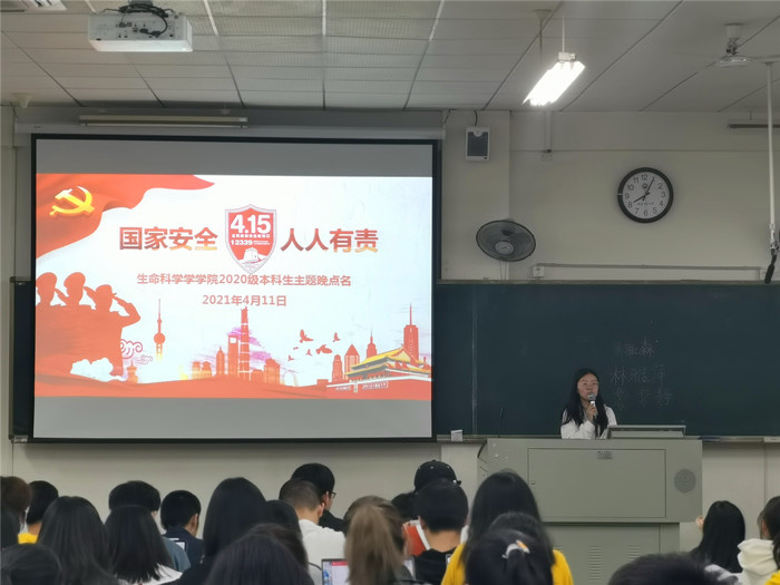 在第六个“全民国家安全教育日”来临之际,生命科学学院利用周末集中教育,以线上线下相结合的形式面向全院学生开展国家安全教育主题宣讲,引导师生树立总体国家安全观,增强国家安全法治意识。