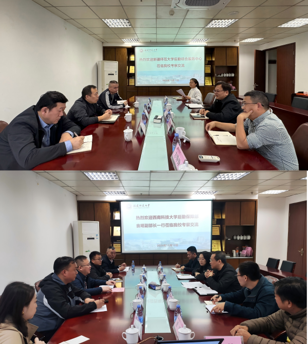 12月11日-12日,新疆师范大学后勤综合服务中心、西南科技大学后勤保障部来校调研交流。两所高校围绕后勤机制体制、校园物业服务外包管理情况、食堂运行管理模式、后勤信息化等主题与九游平台(中国)后勤相关负责人进行交流和研讨。双方一致认为应强化后勤服务保障的交流合作,互学互鉴,共同推动后勤服务高质量发展。调研期间,两所高校分别实地参观了九游平台(中国)宿舍楼、物业大厅、餐厅等场所。(后勤管理处、后勤服务集团)