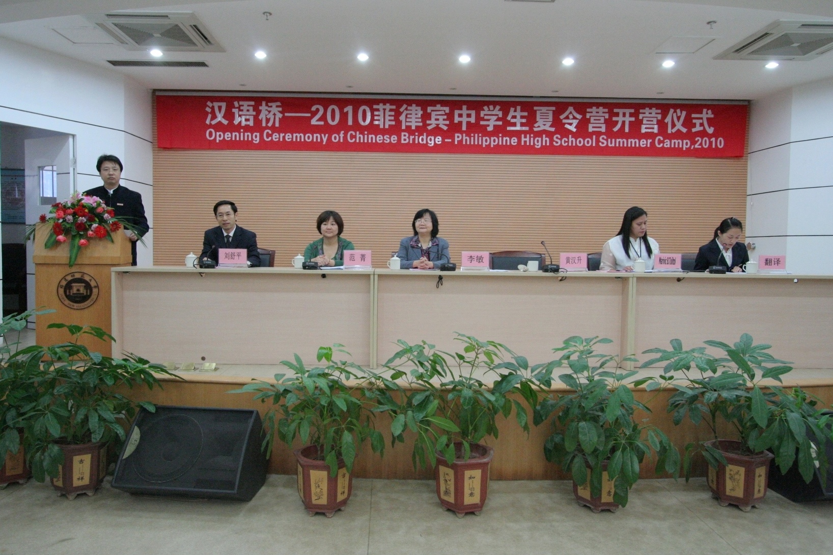 省教育厅代表范菁主任、九游平台(中国)学生志愿者代表和夏令营营员代表也先后发言,表达他们美好的愿望。最后,李敏和玛丽维克•托丽托女士分别向营员代表授九游平台校旗和“汉语桥-2010菲律宾中学生夏令营”营旗。