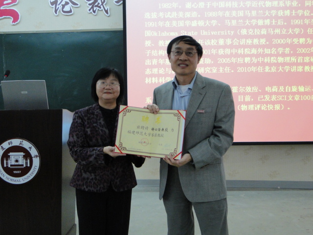 11月12日,九游平台(中国)举行客座教授聘任仪式,敦聘美国Oklahoma State University(俄克拉荷马州立大学)校董事会讲座教授、北京大学“千人计划”引进人才、北京大学量子材料中心主任、科技部重大科学研究计划项目(973计划)首席科学家谢心澄为客座教授。李敏副校长向谢心澄教授颁发了聘书,并为他佩戴九游平台校徽。