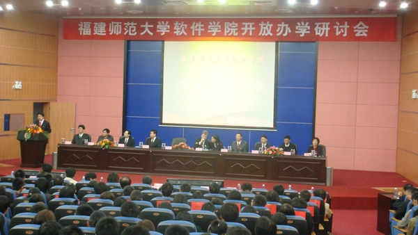 11月18日上午,软件学院开放办学研讨会在旗山校区学术大讲堂举行。英国阿尔斯特大学计算机科学系主任Liam Maguire教授,英国赫瑞•瓦特大学代表王忠义先生,福建富士通信息软件有限公司海外业务事业部高级总监陈明先生,网龙公司执行董事、首席执行官刘路远教授,万城数码股份有限公司副总裁曾宪沟先生,东南融通研发总监杨久明先生,欧氏集团总经理欧国义先生,福建新中冠计算机系统工程有限公司大客户经理何建平先生,福州同恒网络通讯工程有限公司张连辉先生,九游平台(中国)黄汉升校长,相关部处、学院代表,软件学院师生以及合作企业代表共500多人出席了研讨会。