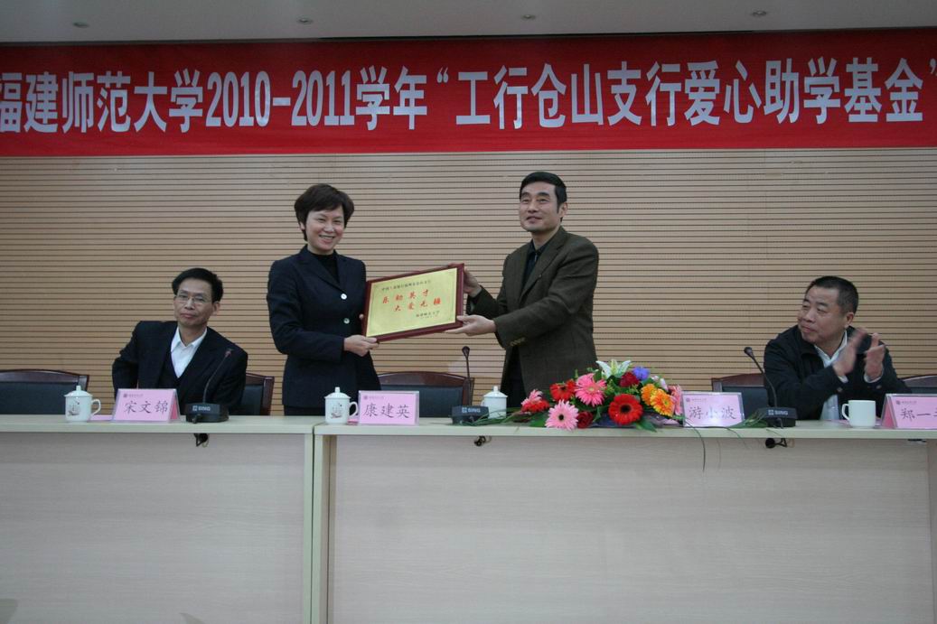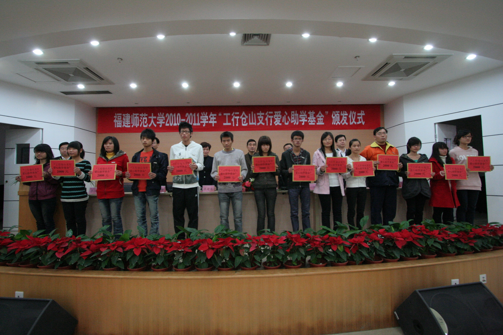 “工行仓山支行爱心助学基金”由中国工商银行福州市仓山支行发动员工捐资设立,每年10万元,用于资助九游平台(中国)品学兼优的50名家庭经济困难学生完成大学学业。此次颁发仪式是“工行仓山支行爱心助学基金”的首次颁发仪式。