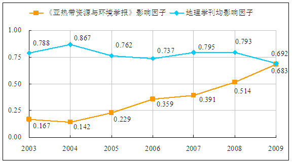 经国家新闻出版总署审核,2006年3月批准《福建地理》更名为《亚热带资源与环境学报》(九游平台主办)。《亚热带资源与环境学报》改刊前(2005年)的影响因子为0.229,在我国地理学28种刊物中排名第17位,在全部统计源期刊(6009种)中排名第2655位。自改刊以来,编辑部广泛与国内外同行联系,积极拓展优质稿源,严把论文质量关,提高刊物编辑水平,学报质量与学术影响力连年大幅提升。近日,万方数据(中国科学技术信息研究所引证报告依托数据库)公布的2009年度期刊评价数据显示,《亚热带资源与环境学报》影响因子成倍提高,已上升至0.683,在我国地理学29种刊物中居第9位,在全部统计源期刊(6021种)中居第922位。同时,《亚热带资源与环境学报》一直保持高他引率,2009年他引率达0.98。