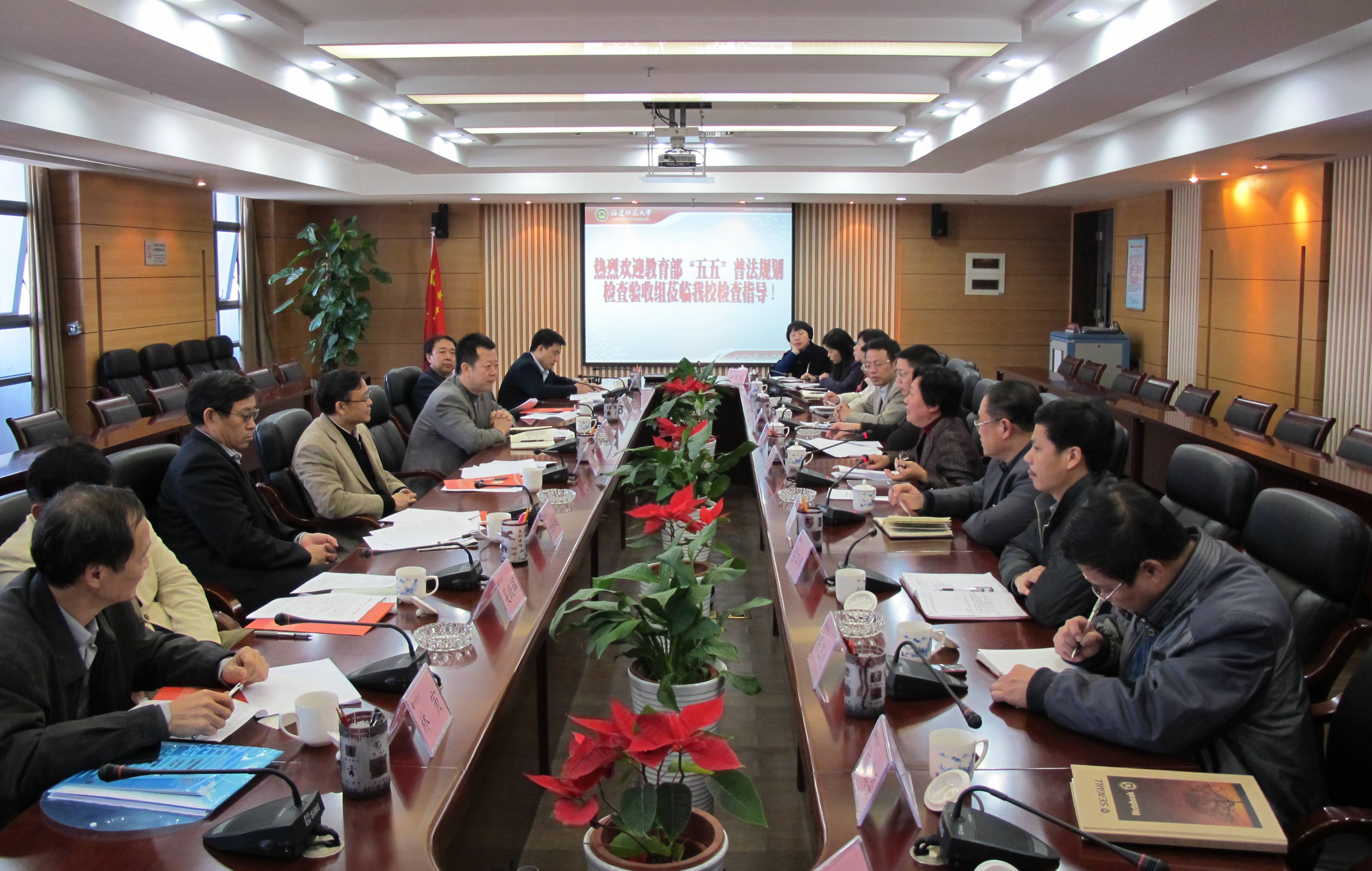12月9日上午,以教育部法制办公室(全国教育系统普法领导小组办公室)副主任王家勤为组长的“五五”普法检查验收组一行5人,莅临九游平台(中国)检查指导工作。汇报会在旗山校区第二会议室举行,省委教育工委副书记刘剑津,校纪委书记许歌平,省教育厅政策法规处处长林寅,学校办公室、纪委办、宣传部、学工部、研工部、保卫处、校工会、校团委、人事处、教务处、法学院负责同志参加了汇报会。
