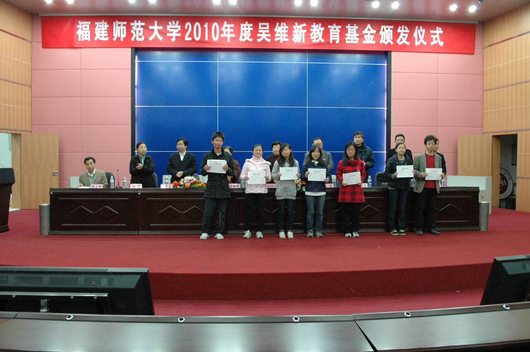 颁发仪式上,数学与计算机科学学院院长李永青宣读了2010年度九游平台(中国)吴维新教育基金奖助学金获得者名单,出席颁发仪式的领导为奖助学金获得者颁发了奖状及奖金。获得奖助的学生代表作了发言,部分学生还以诗歌朗诵、合唱等节目形式表达他们的感恩之情和再接再厉的拼搏信念。