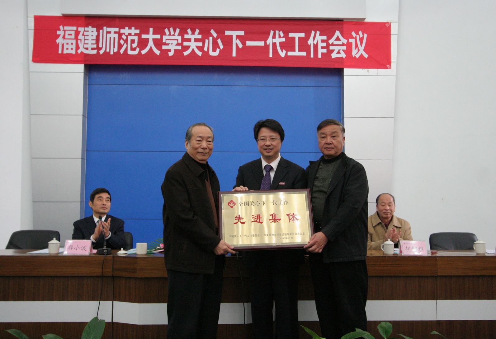 大会首先举行颁奖仪式,黄汉升校长代中国关工委、中央文明办向校关工委颁发“全国关心下一代工作先进集体”奖牌及学校给予的奖励。