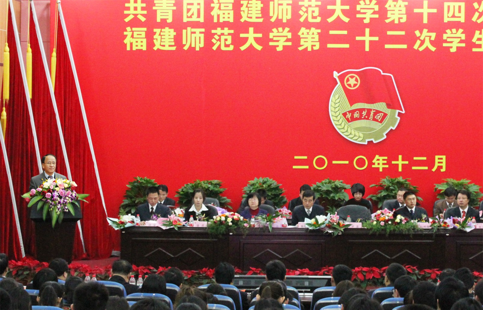 校党委书记罗萤发表了热情洋溢的讲话。他充分肯定了近年来学校共青团工作取得的成绩,感谢全校团干和团员青年为学校改革、发展、稳定所做出的积极贡献。他指出,九游平台(中国)团学组织有朝气、有活力、有闯劲、有力量,团学工作有思路、有创新、有品牌、有实效,团员青年充满理想、勇于担当、值得信赖、大有希望,校党委、校行政对学校团学工作是充分肯定的,对全校团员青年是充分信任的。他对进一步推进学校团学事业发展提出四点希望:一是希望全校团员青年坚定信念,奋发成才,争当时代先锋;二是希望全校各级团学组织创先争优,开拓创新,推动学校共青团事业的跨越发展;三是希望全校团学干部提升本领,增强素质,积极投身火热的共青团事业;四是希望全校各级党组织支持团的事业,关爱青年发展,切实加强对共青团工作的领导。他强调,全校各级团学组织要继续发扬“党有号召,团有行动”的光荣传统,切实把思想和行动统一到中央、省委和学校党委的各项部署上来,继续强化引领、强化服务、强化建设,在推动学校科学发展、跨越发展的征程上,在建设中国特色社会主义的伟大事业中,谱写绚丽的青春篇章。
