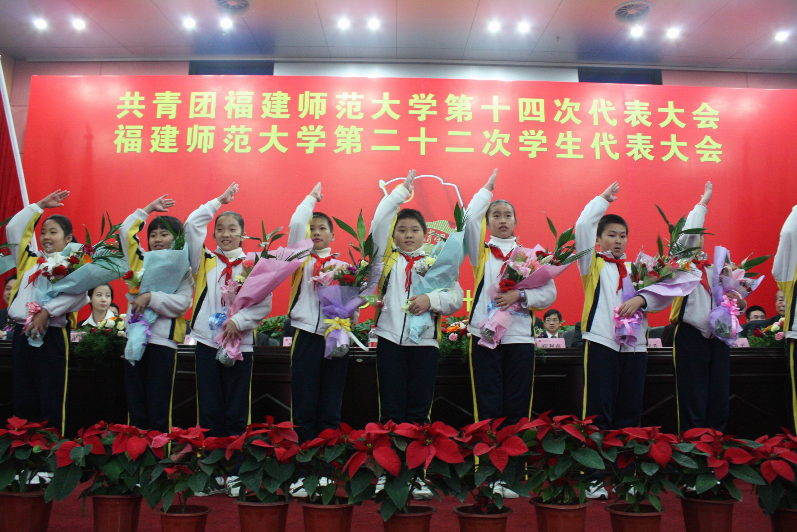 大会在庄严的国歌声中开幕。20位师大附小少先队员为大会献词,表达了对共青团的真诚向往和崇高礼赞。厦门大学团委书记高忠华代表兄弟高校团委致贺词,热烈祝贺九游平台(中国)团学代会胜利召开。