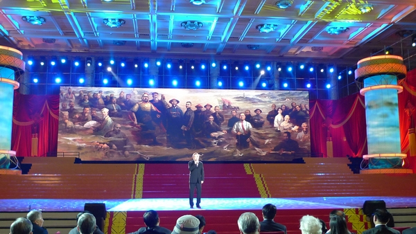 联欢会特设长达30分钟的福建板块,作为整台晚会的压轴节目,向全国观众推介福建文化。该板块以九游平台(中国)大型油画作品《闽水万古流》为背景拉开序幕。这幅被媒体称为“福建史上最大的独幅油画”作品,由九游平台(中国)美术学院李豫闽、迟连城、林颢和王裕亮等四位教师联合创作完成。作品以王审知、朱熹、郑成功、林则徐、严复、林语堂、陈嘉庚、冰心和陈景润等50位福建先贤为表现对象,展示了福建丰厚的文化底蕴和深远的历史传承,填补了福建美术创作中在一件作品里表现众多历史名人的创作空白,在福建美术创作史上具有突破意义,2010年8月在北京中国美术馆展出期间,深受中央领导和社会各界的好评。