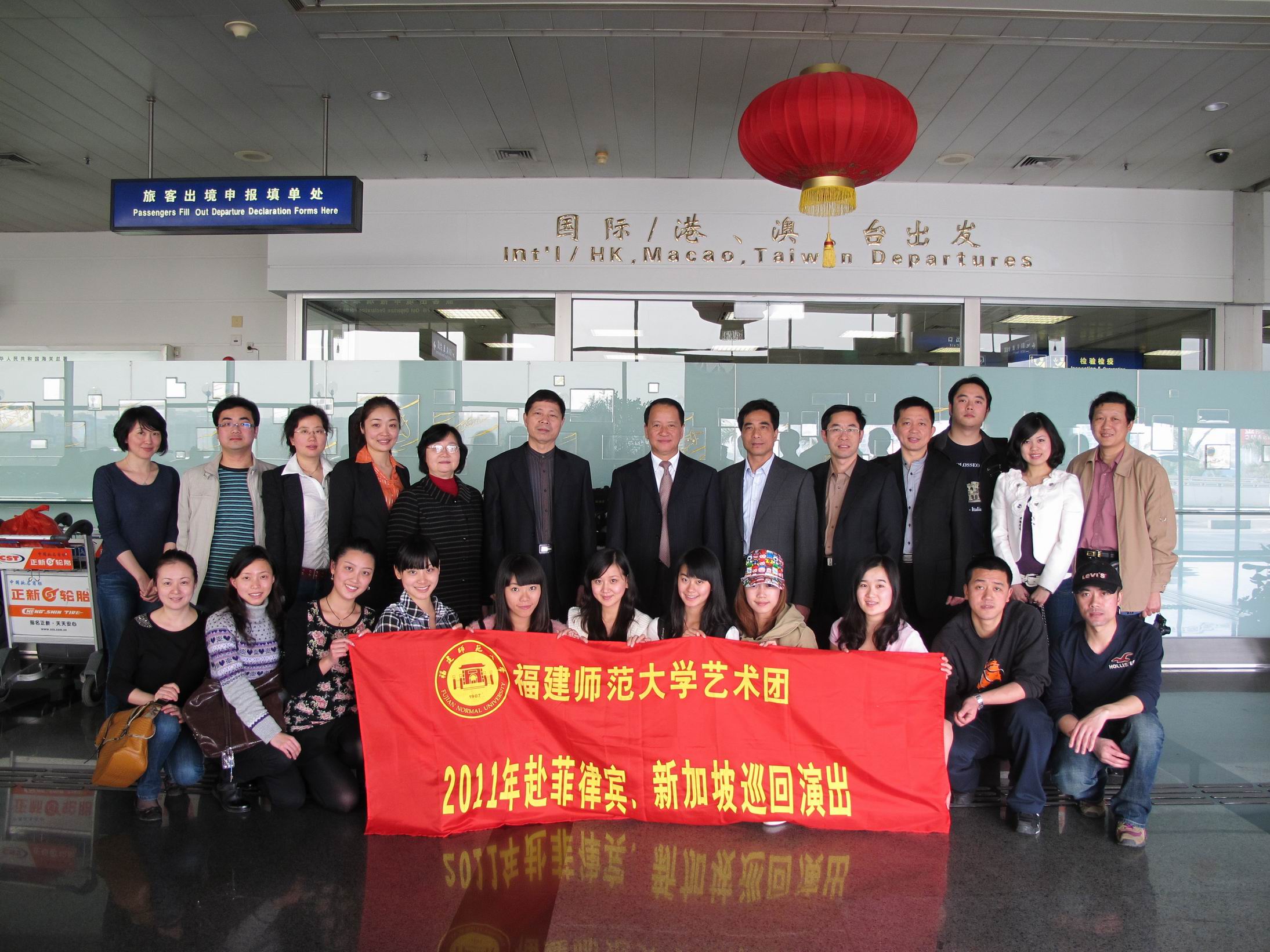 代表团于2月10日上午启程。校领导黄汉升、李敏、许明,学校办公室、学工部、校团委、国际合作与交流处和文学院、音乐学院、体育科学学院、海外教育学院等相关部处、学院负责人到场送行。