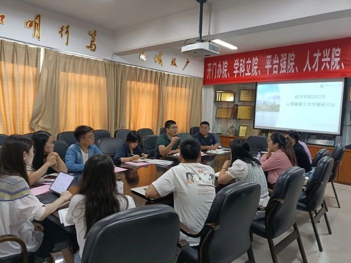 近日,经济学院在人文楼333会议室召开2022年心理健康工作专题研讨会。学院全体政工干部、校研究生兼职心理辅导员邓文娇参加了会议。