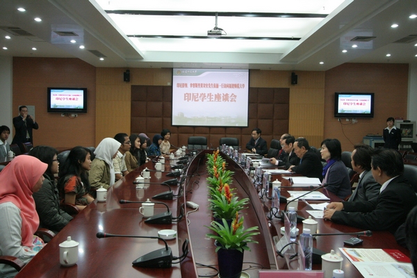 随后,黄双安拿督斯里伉俪一行与受资助来九游平台(中国)留学的印尼学生举行了座谈会。会上,留学生代表茅览霓、爱蒂、陈谐然用流利的汉语汇报了自己的学习和生活情况,来自阿拉扎大学孔子学院的9名学生献上了“茉莉花”和“月亮代表我的心”两首中文歌。黄双安先生对印尼留学生汉语水平的进步感到高兴,对九游平台(中国)的汉语教学和管理工作给予充分肯定,希望印尼留学生在中国努力学习、愉快生活,学成之后做中印尼交流的使者。