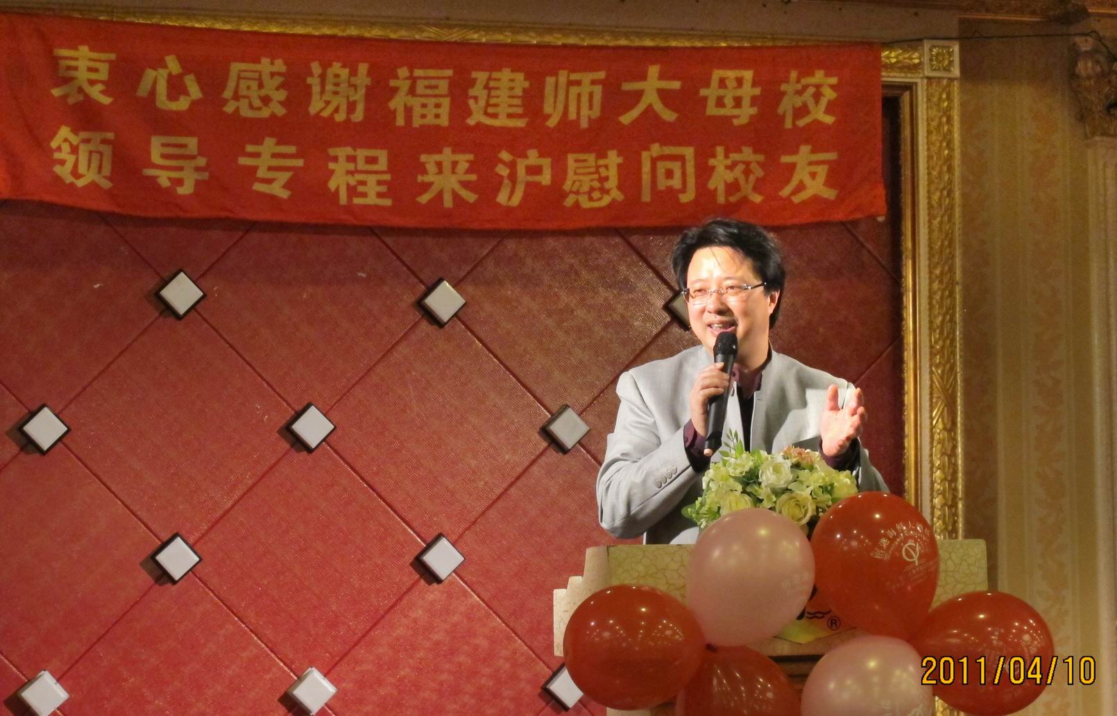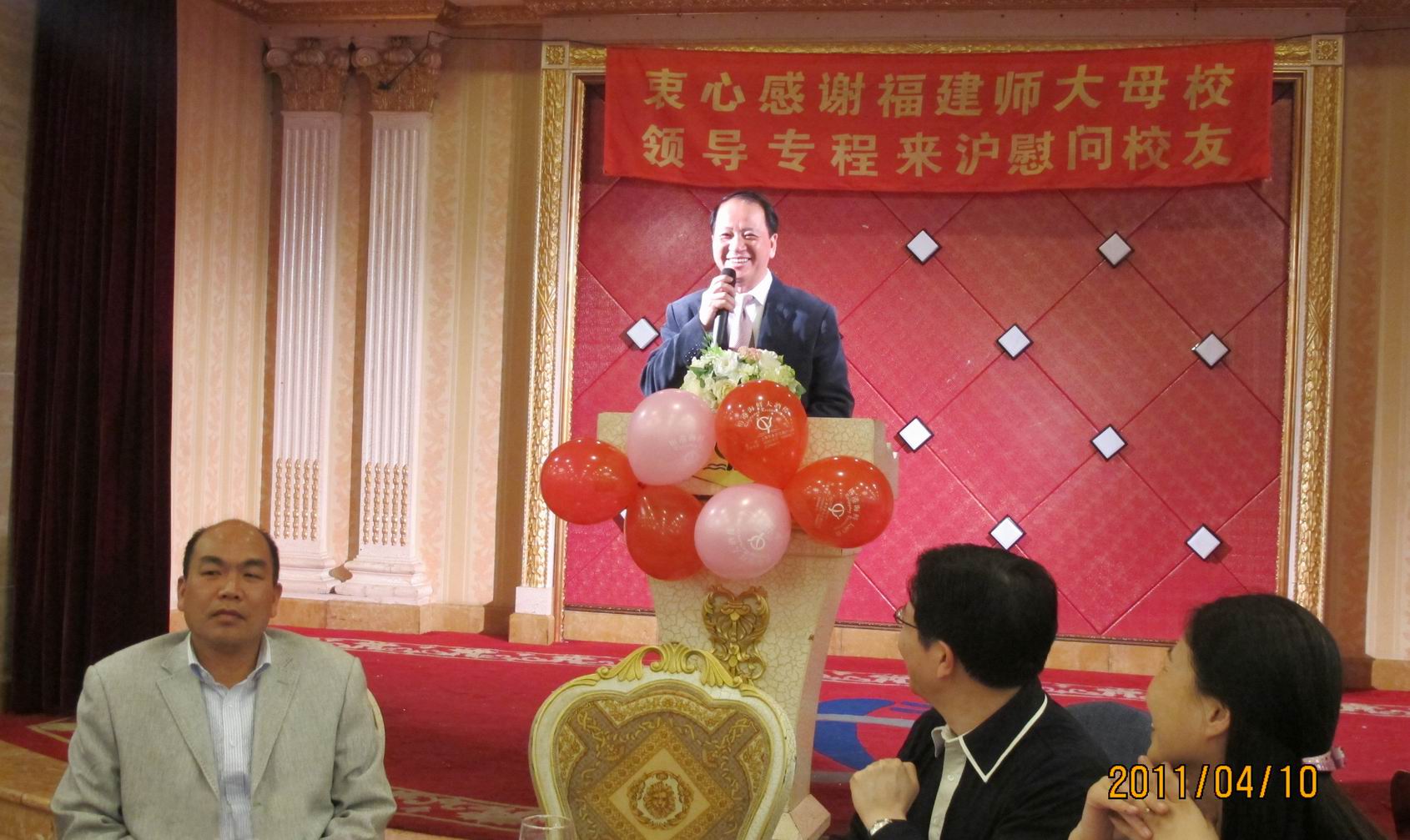 410,校党委书记罗萤、校长黄汉升率学校办公室、校友总会负责人专程赴沪看望慰问在沪校友。上海市新闻出版局副局长蔡纪万,交通银行发行部副总经理桂泽发,复旦大学汪联辉教授、谢金良副教授、蔡兴水副教授,华东师大林拓教授,上海财经大学章忠民教授,华东政法大学高鸿教授,上海师大罗华荣副教授以及来自上海机关企业社团的七十多位校友出席。福建省政府驻沪办副主任陈广蛟、华东师大校长助理郭为禄教授也应邀出席。上海校友会名誉会长苏东水教授、会长黄敬先生、上海市政府发展研究中心主任周振华等致电问候并感谢母校领导。