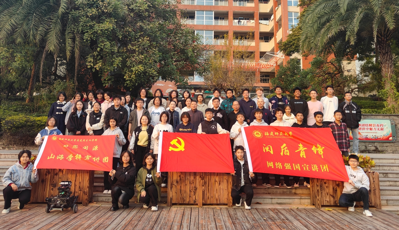 1228日,统战部组织马克思主义学院“习思闽源”山海学梓宣讲团、计算机与网络空间安全学院“闽盾青峰”网络强国宣讲团、光电与信息工程学院机器人协会(Pikachu战队)赴福清华侨中学开展“大手拉小手”活动。
