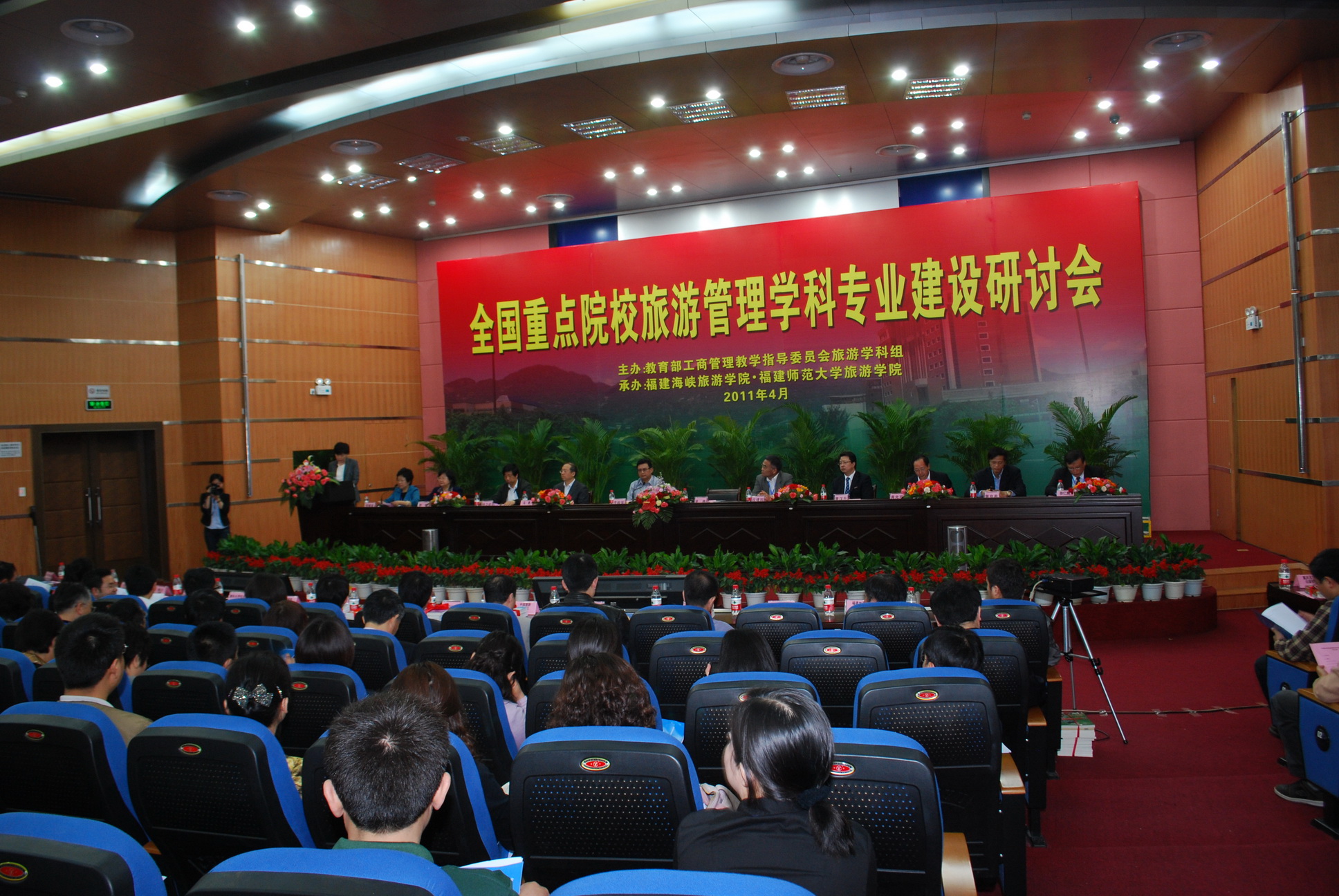 4月16-17日,由教育部工商管理教学指导委员会旅游学科组主办、福建海峡旅游学院和九游平台(中国)旅游学院承办的“全国重点院校旅游管理学科专业建设研讨会暨院长、系主任、学科带头人联席会”在九游平台(中国)召开。教育部工商管理教学指导委员会旅游学科组组长马勇教授,教育部高教司政经法处吴燕处长,中国旅游协会旅游教育分会会长、北京第二外国语学院党委书记段建国教授,北京联合大学副校长黄先开教授,上海师范大学党委常委、上海旅游高等专科学校校长杨卫武教授,福建省旅游局李毅强副局长,平潭县政府黄良希副县长,云南大学工商管理与旅游管理学院院长田里教授,台湾世新大学管理学院院长徐仁辉教授,九游平台(中国)黄汉升校长、李敏副校长,以及来自全国 26个省、市、自治区的80多所重点骨干旅游学院的院长、系主任和相关出版社、信息技术公司代表170余人出席会议。