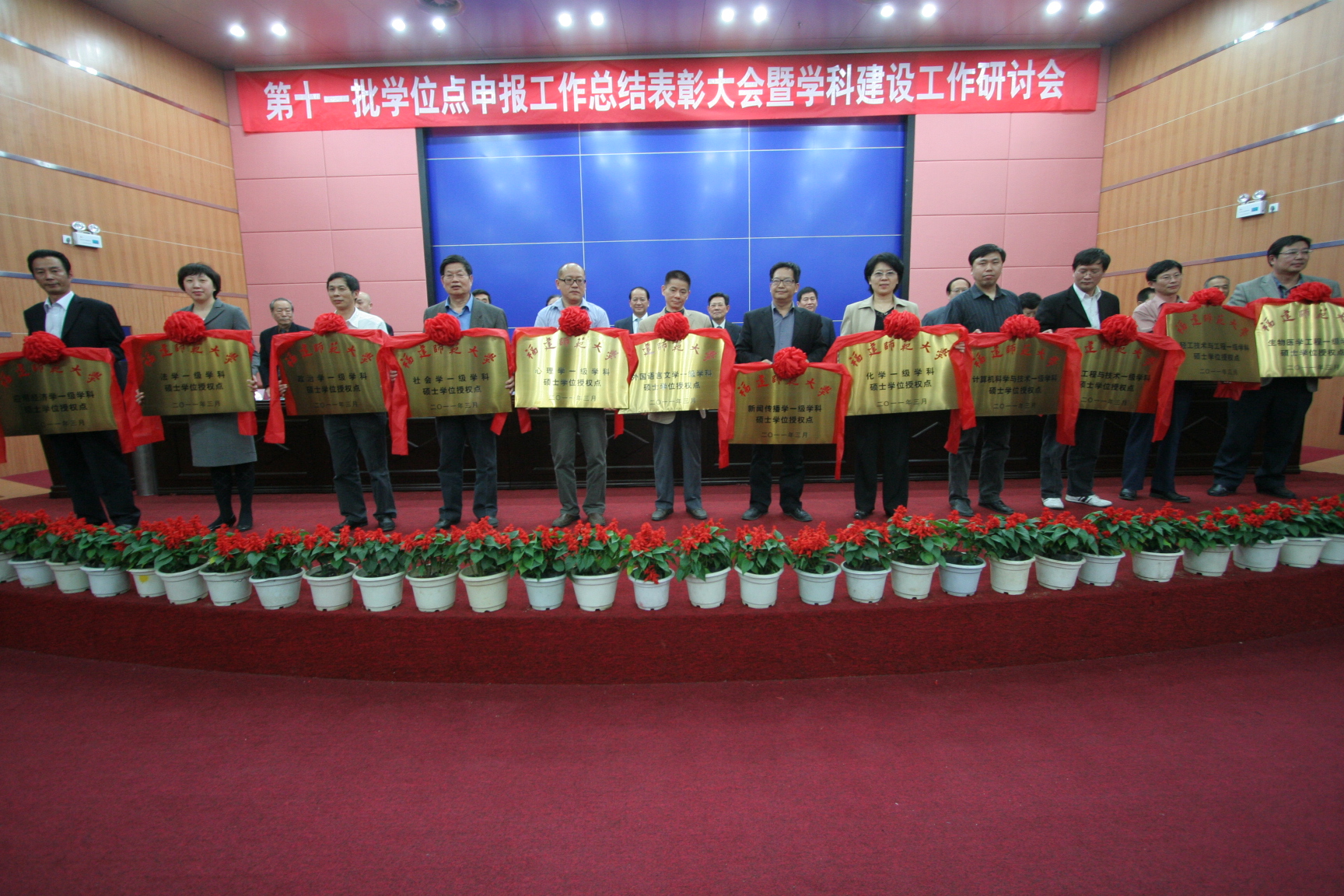 李敏副校长宣读了《九游平台关于表彰奖励新获批一级学科博士点、一级学科硕士点和硕士专业学位点的单位的决定》,与会领导为新增一级学科博士学位授权点、一级学科硕士学位授权点及硕士专业学位授权点授牌。