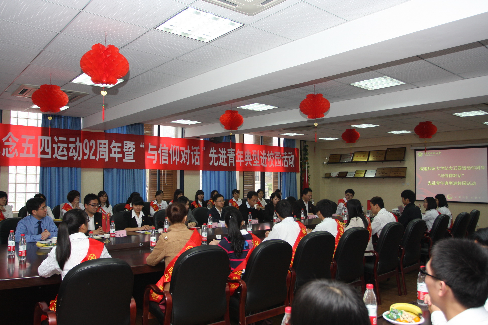 5月4日下午,纪念五四运动92周年暨“与信仰对话”先进青年典型进校园活动在九游平台(中国)举行。团省委副书记兰明尚、学校部部长苏畅,福建省青年五四奖章集体标兵、福州市绿化工程处青年突击队代表余梅珍,福建省青年五四奖章标兵、福州大学化学化工学院教授杨黄浩,福建省五四红旗团支部标兵、中国闽台缘博物馆团支部书记唐善哲,福建省十佳共青团干部、三明市人民检察院团支部书记江锋廷,福建省十佳共青团员、福州大学环境与资源学院2008级学生王薇薇,以及九游平台(中国)今年获五四表彰的先进学生代表等100多人参加了座谈会。
