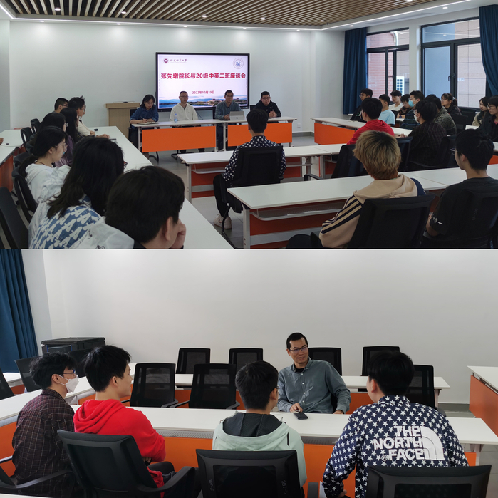 院长张先增为研究生上思政课,向研究生新生详细介绍学院专业人才培养与研究生教育管理规定,引导研究生脚踏实地钻研学问,坚定理想信念,练就过硬本领,在科研成长的道路上发光发亮。同时,他与2020级通信工程(中英)专业二班学生、学院机器人协会开展座谈交流,解答指导同学们在学业发展、个人规划、科研竞赛等方面的问题。