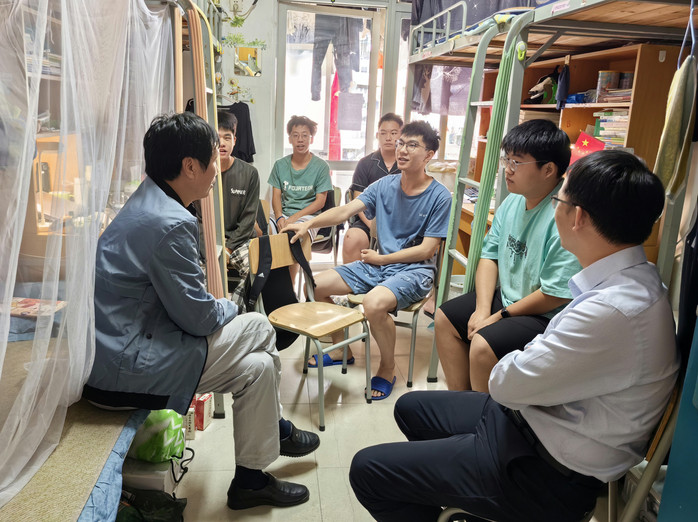 近日,化学与材料学院领导班子通过走访学生宿舍,深入了解学生思想动态、学习生活情况等,与学生聊日常、提建议、谈希望,鼓干劲。