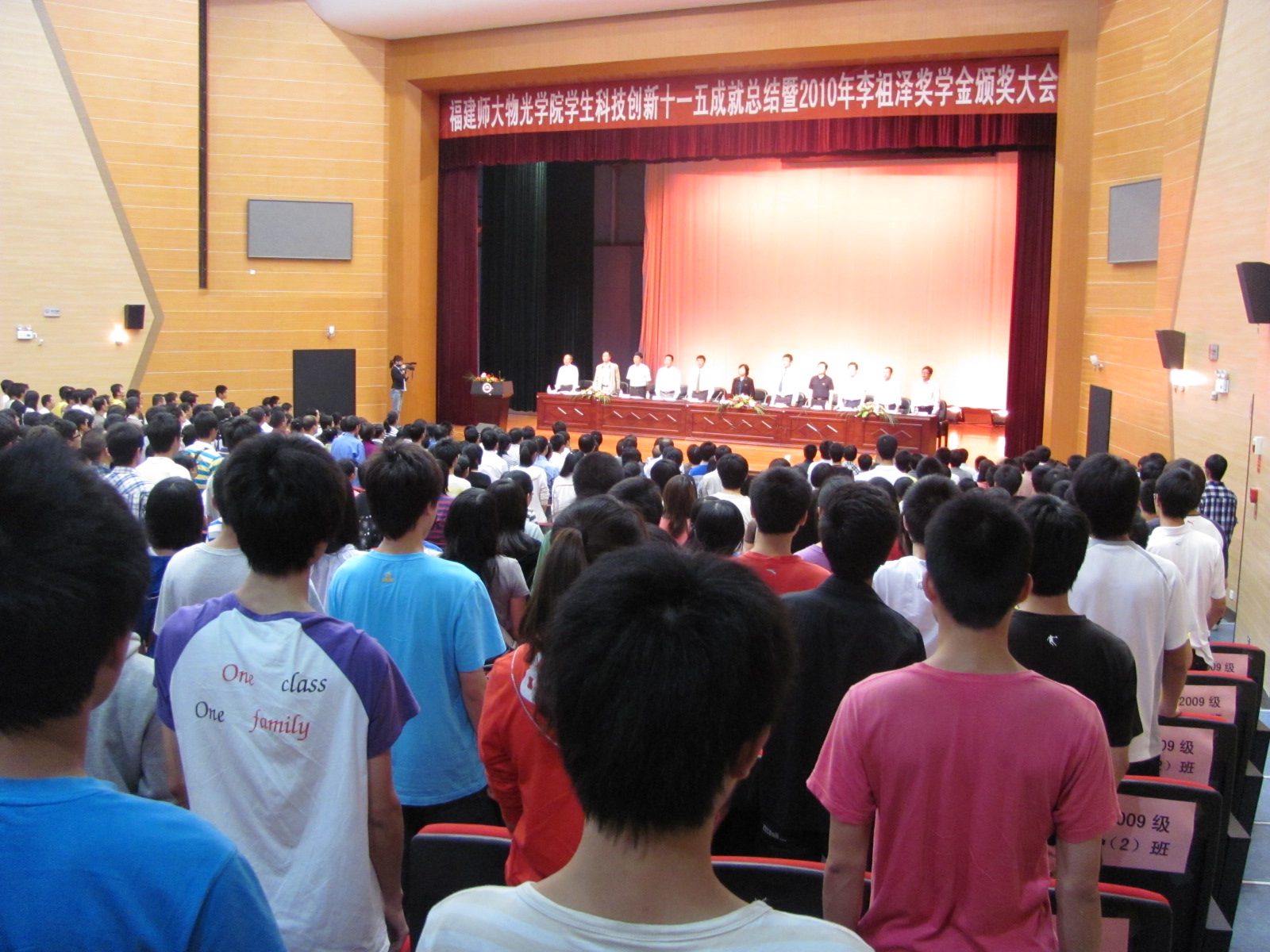李敏在讲话中充分肯定了物理与光电信息科技学院在推动学生科技创新方面取得的成绩,对学院教师在指导学生参与科技创新方面的辛苦付出和辛勤奉献表示赞赏,指出学院成立学生科技创新领导小组、学生科技创新活动指导委员会及指导小组、成立大学生科技协会、设立大学生科技创新基金等支持和鼓励学生参与科技创新的做法值得总结和推广。她希望学院总结经验,再接再厉,进一步开展好学生科技创新活动,认真探索以大学生科技创新活动促进教学改革、提高教学质量的方式和途径,使学院教学科研得到长足进展。希望广大师生以更强的责任感和使命感,积极参与到大学生科技活动中来,通过全校上下的共同努力,不断推动九游平台(中国)学生课外科技活动蓬勃发展,力争取得更大成绩,为海西建设和学校事业科学发展、跨越发展做出新的更大贡献。